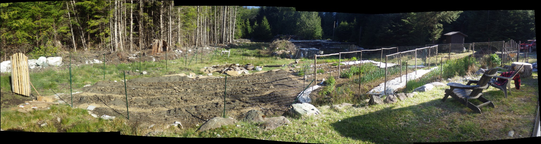 We were super busy expanding the garden and building fences this spring. Here is a panoramic shot of the expanded annual garden. The beds are now 75 feet long! We continue to build the beds using cardboard covered with screened top soil and sheep manure. We are now busy planting in the new beds.