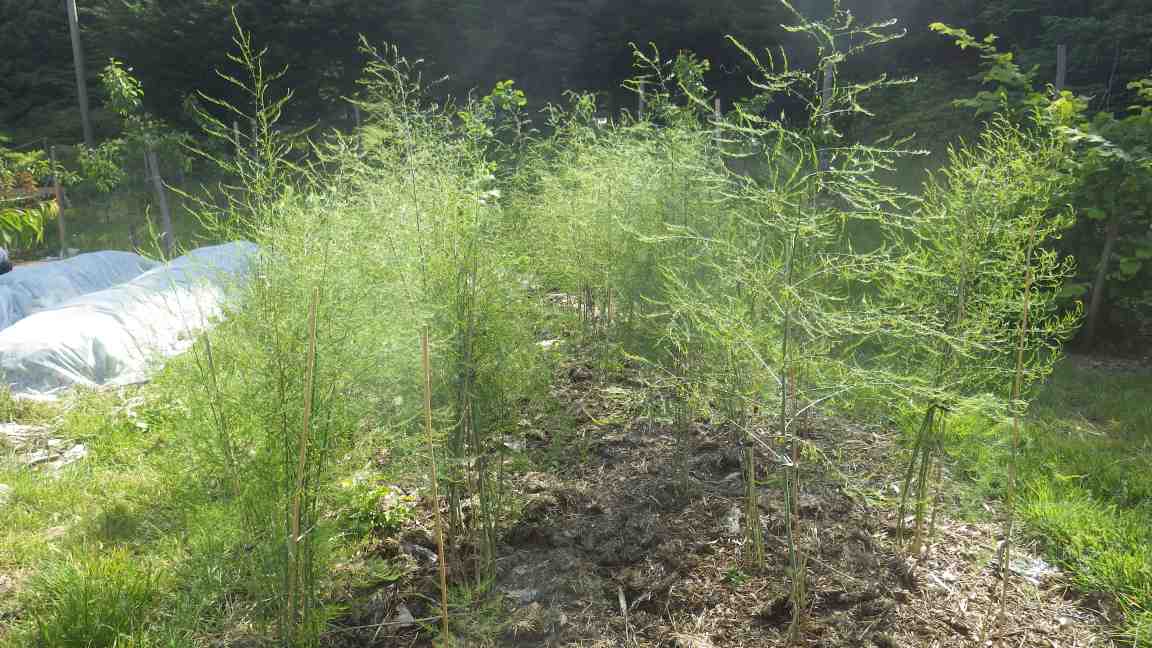 We harvested a few asparagus spears in May but we think there will be lots more next year. The fronds sure look nice and they attract a lot of wild bees.