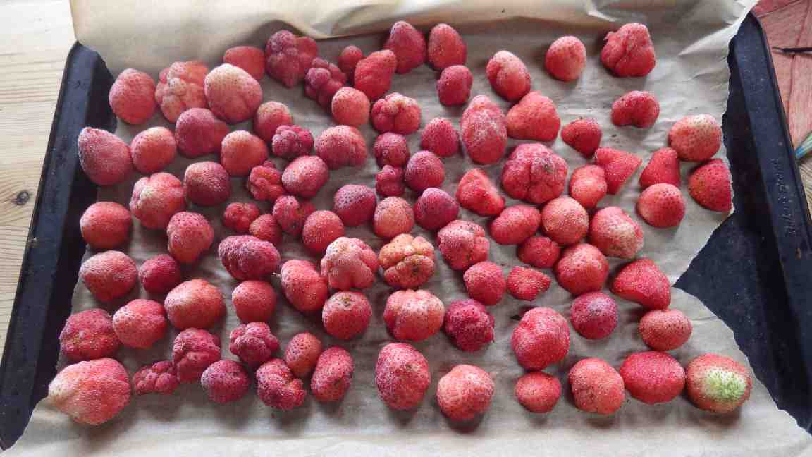 Since the strawberries sold out so fast, Linda left me a few "seconds" that I put on a tray and froze in the deep freeze.