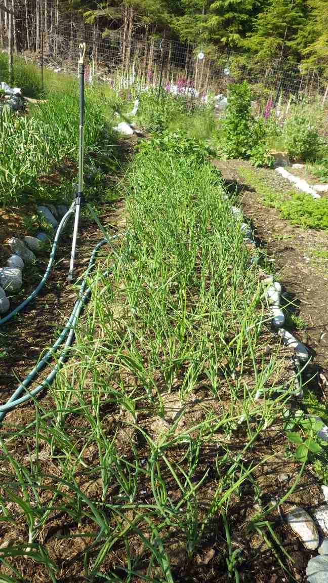 Hundreds and hundreds of onions are busy growing. We're just finishing off last year's storage onions so lots more coming for us to eat year round plus some to sell.
