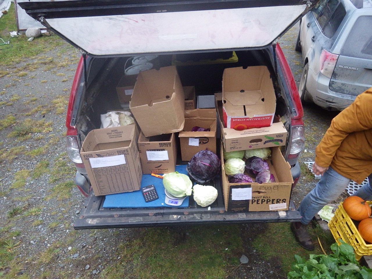 Packing up our late fall custom orders for Saturday morning deliveries. With the fall bounty we kept delivering right into November.