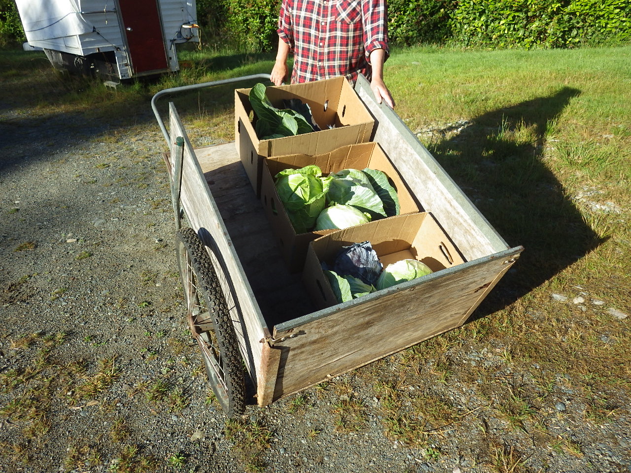 More cabbages from the "Cabbage Patch Lady" aka Slow Dog Farm, heading to the Burger Barn. A whooping total of 49 pounds of cabbage. Coleslaw here we come!