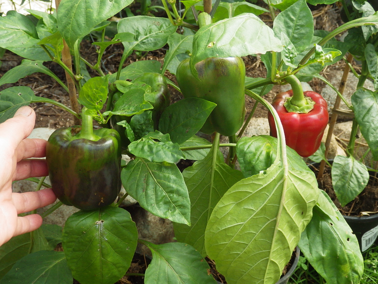 Here is a close up of those sweet peppers. We already harvested a few - excellent in stir fry, omelettes, and tacos.