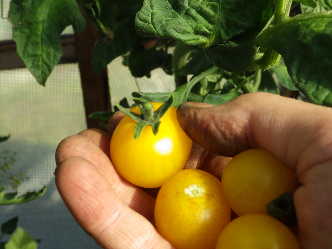 Our first harvest of yellow tomatoes from Greenhouse #2.