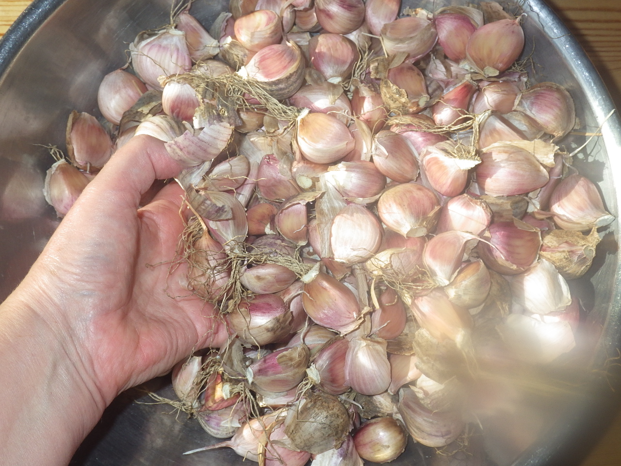 For the past 16 years we have been growing out and then saving garlic cloves to build up our garlic production. After harvesting most of the potatoes, this year we planted over 500 garlic cloves in late September.